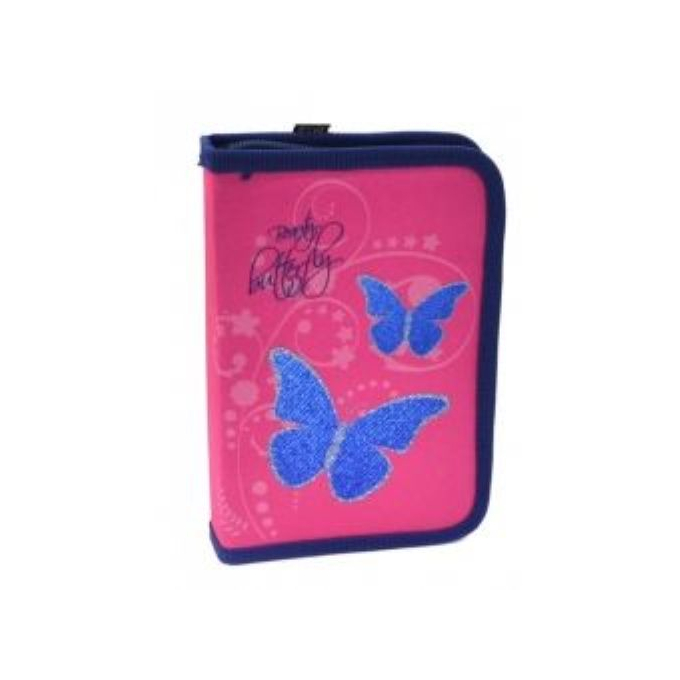 Размери 20 x 15 x 3,5 см. С един цип и двойно разгъване. Без ученически приндалежности.