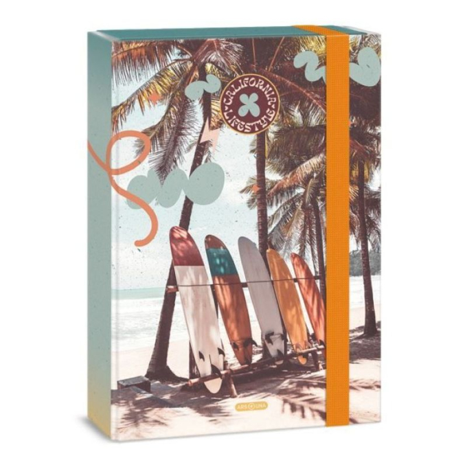 Изработена от много плътен картон с дебелина 7 mm. Размери – A4 (23 х 4,5 х 34 cм). Затваряне – с широк ластик.