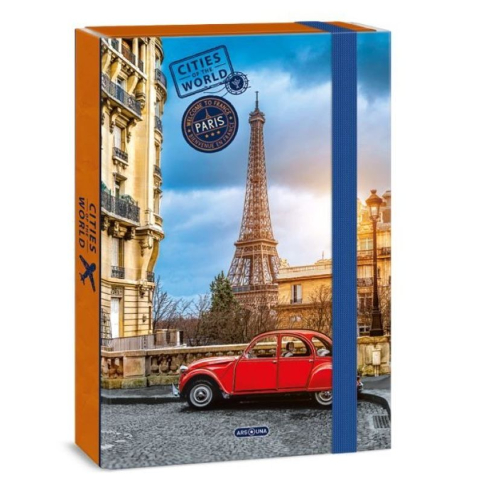 Изработена от много плътен картон с дебелина 7 mm. Размери – A4 (23 х 4,5 х 34 cм). Затваряне – с широк ластик.