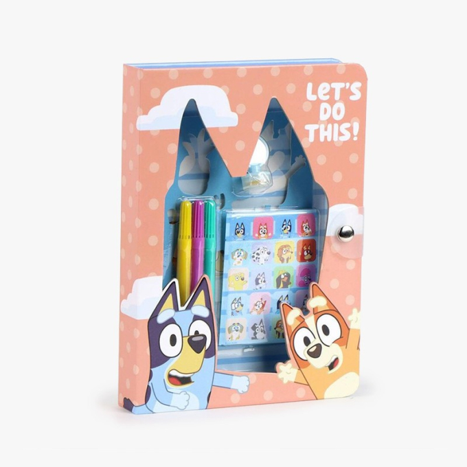 - Дневник-папка с твърди корици и дизайн Bluey;
