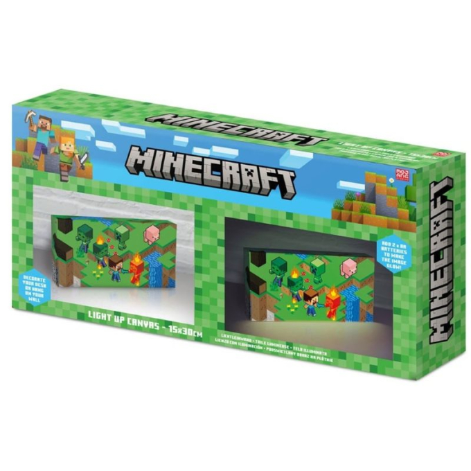 Уникалка LED декоративно платно Minecraft Isometric подходящо за бюро или окачено на стената. Размери: 30 x 16 см.