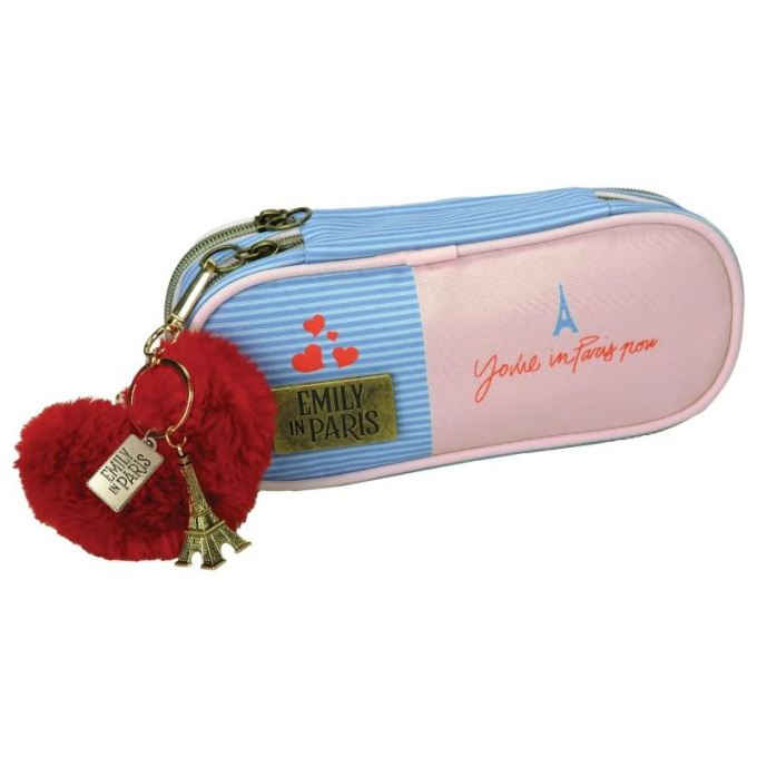 Стилен ученически несесер Emily in Paris в овална форна и впечатляващ външен вид с практичност, предлагайки идеалното място за училищни пособия. Размери: 6 x 23.5 x 10.5 см.