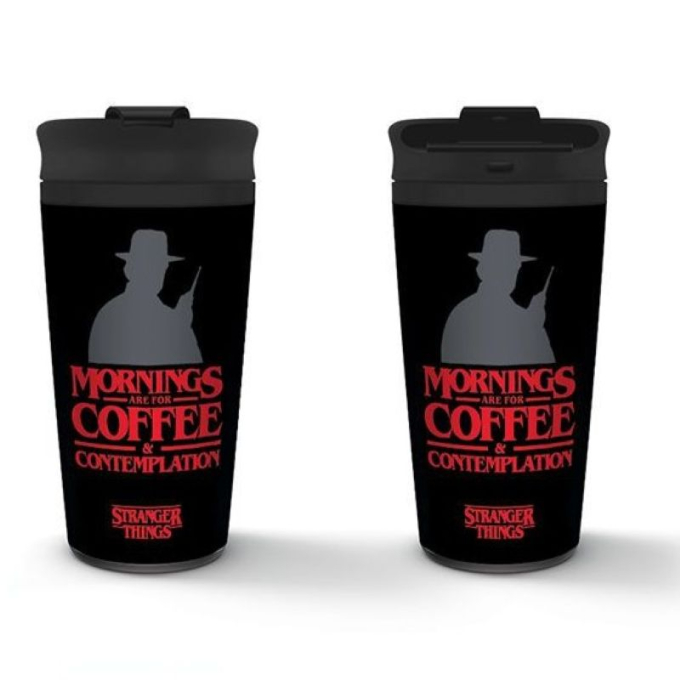 Ако и вие сте фенове на хитовия сериал на Netflix Stranger Things, то със сигурност знаеш кой е Хопър. Той е началник на полицията в Хокингс и любим персонаж на милиони фенове на сериала. Чашата за път е вдъхновена именно от героя на Джим Хопър. На нея ще видите изобразена една от най-емблематичните му реплики "Mornings are for coffee and contemplation". Спомняте ли си кой беше при него, когато той каза тази реплика? Чашата е с изчистен дизайн и вместимост 425ml.
