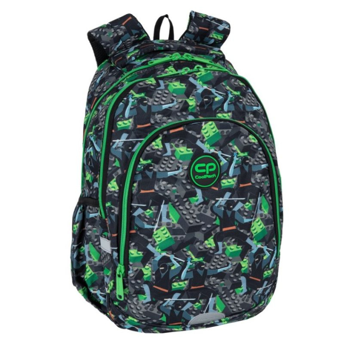 Компактна раница с две основни отделения. Особено подходяща за 1-4 клас. Удобен, твърд EVA гръб. Колан за закопчаване през гърдите. Подсилено дъно. Странични джобове. Водоотблъскваща материя. Подплатени презрамки и дръжка за носене в ръка. Органайзер за дребни вещи в предния джоб. Отделение за лаптоп. Ключодържател. Размери: 41 х 31 х 15 см.