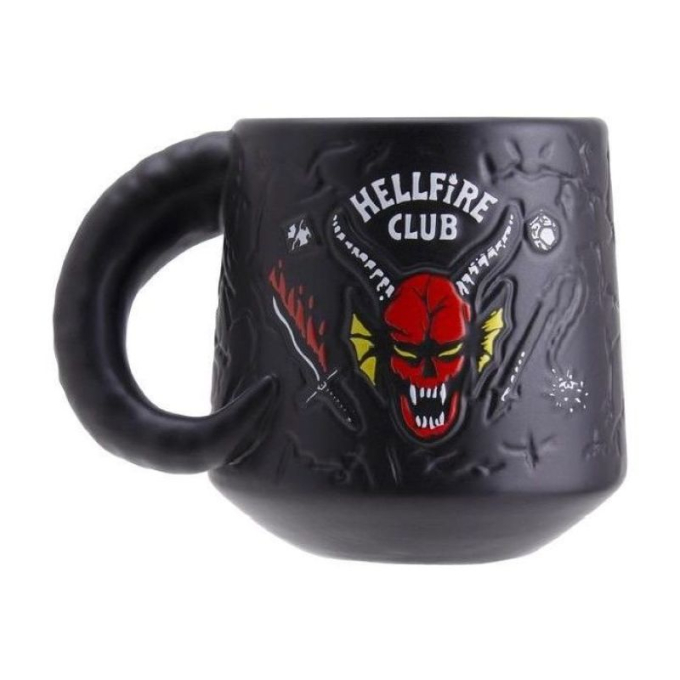 Керамична чаша Hellfire Club Demon Embossed. Вместимост: 400 ml. Черен цвят с релефен дизайн. Издръжлива и подходяща за горещи напитки. Стилна за фенове на Stranger Things.