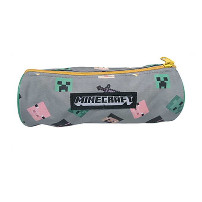 Ученически несесер, цилиндър Minecraft Mob Heads, без съдържание. Подходящ за деца, които не искат да си губят времето с подреждане, а съхраняват всичко на едно място. С принт на кубичните глави на Creeper и пришит гумен бадж MINECRAFT. Здрав, стабилен цип. Несесер, изработен от водоотблъскваща материя, която се почиства лесно.