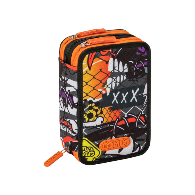 Ученически несесер Comix Bright Zombie Boy с 3 ципа със съдържание: